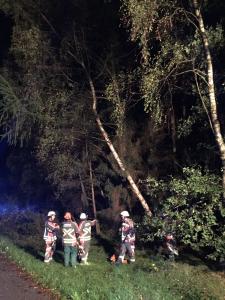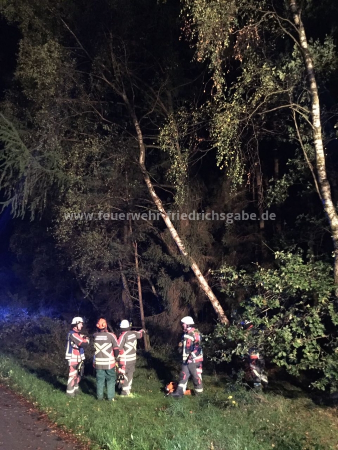 Baum auf Straße gestürzt. Mittels Kettensäge beseitigt.