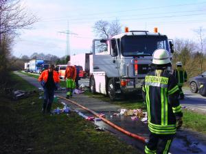 Es brannte Ladung auf einem LKW, unter Atemschutz gelöscht.