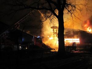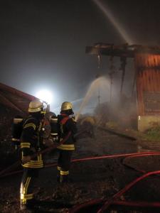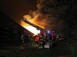 Es brannten Rundballen und landwirtschaftliche Maschinen in einer Lagerhalle, das Feuer hatte bereits auf einen Kuhstall übergegriffen.