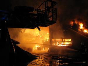 Auslösen der Brandmeldeanlage durch Entstehungsbrand in einer Maschine.