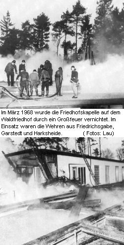 März 1968 um 5.40 gab es Großalarm: Es brannte die reetgedeckte neue Friedhofskapelle.