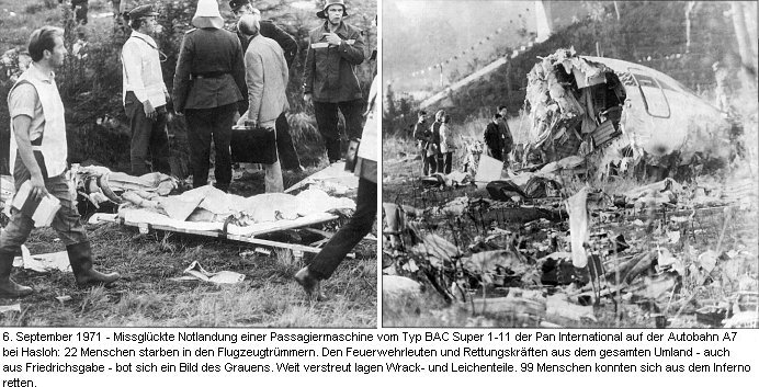 1971: Flugunfall auf der Autobahn; 22 Tote. |
