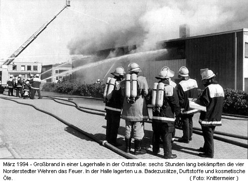 1994: Sechsstündiger Großbrand einer Lagerhalle. |
